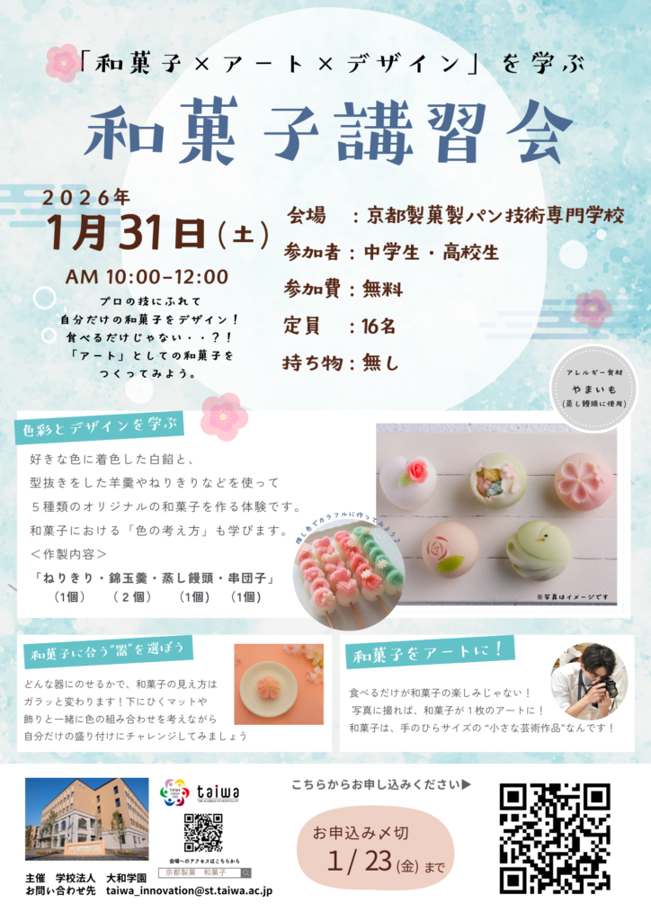 和菓子×アート×デザインを軸とした地域創造型キャリア教育推進事業の一環で実施するものです。